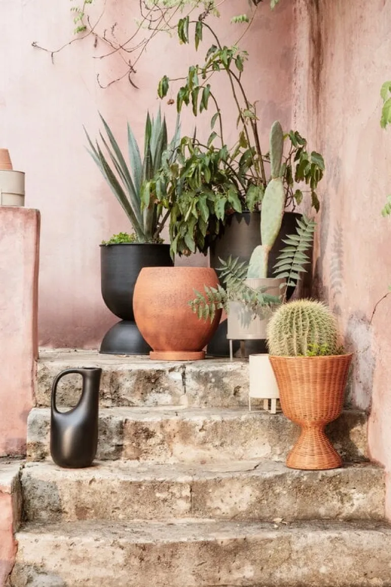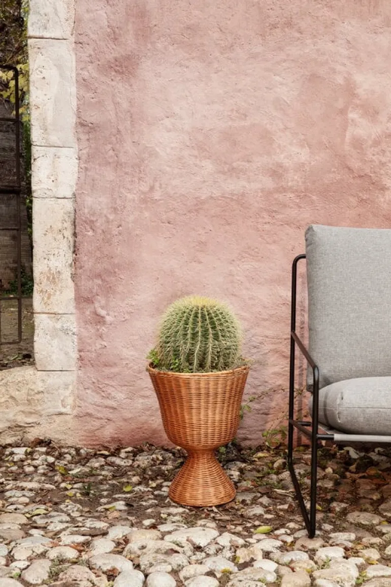 Ferm LIVING:s låga växtställ Agnes ser till att dina blommande krukväxter inte blir förbisedda. Det unika blomställ, handvävt av rotting och förstärkt med en struktur av järn, erbjuder ett spektakulärt hem för blommor och gröna växter och binder dem till inredningen på ett charmigt sätt. Det mångsidiga rottingblombordet är också perfekt för, säg, hallen, som en fång-allt för solglasögon och nycklar – och det är också ett iögonfallande fristående objekt som sådant.