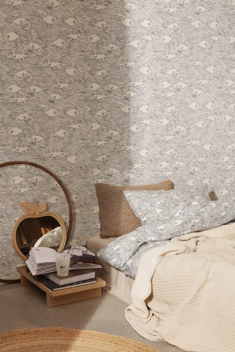 Ferm Livings spegel Apple skänker glädje till barnrummet eller andra rum i hemmet. Den äppelformade spegelns runda kurvor ramas in av bambu och rotting och ger spegeln ett kul, men ändå subtilt och naturligt uttryck.