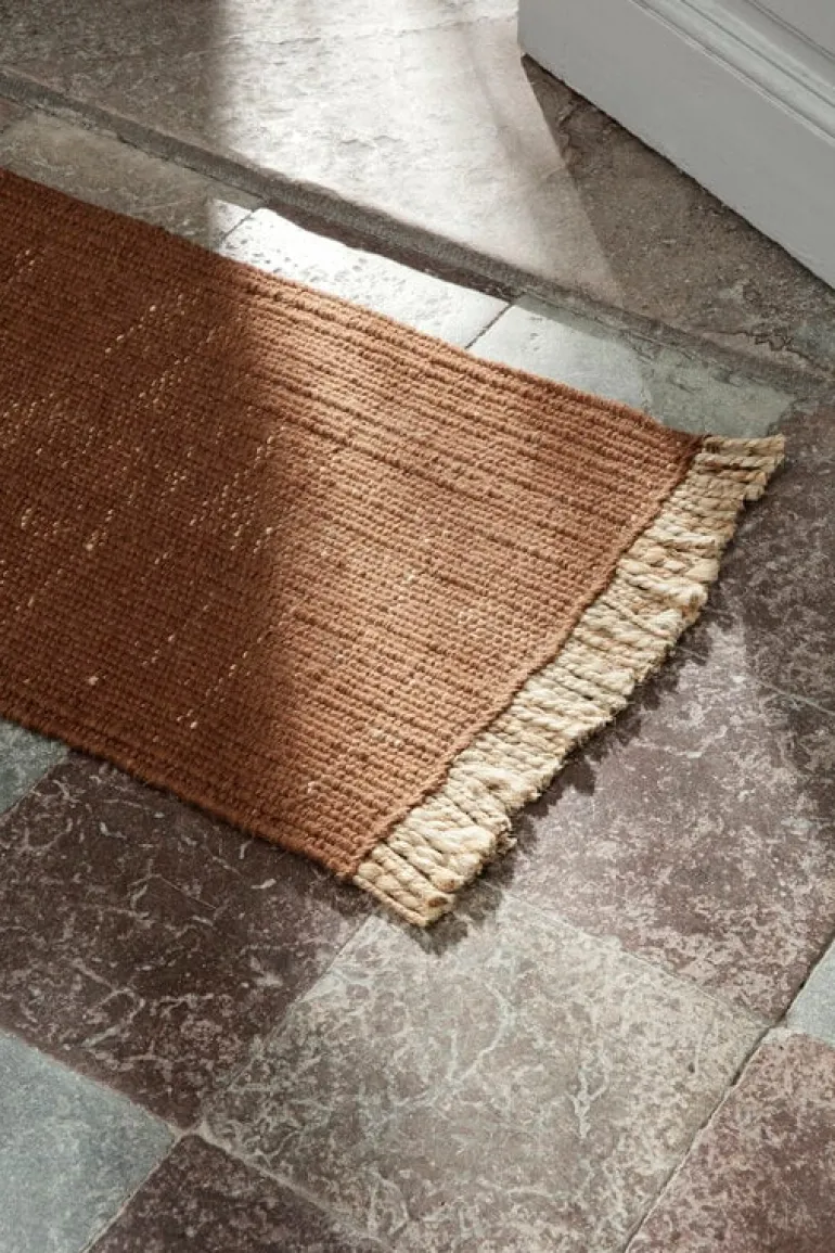 ferm LIVING:s Block matta kombinerar naturlig jute och miljövänligt PET-garn – det senare liknar ull både i textur och utseende men är faktiskt tillverkat av återvunna plastflaskor. Den lilla mattan är idealisk för entréer och hallar men är också ett härligt tillskott till alla rum med en dörr, skyddar golvet framför den och lägger till en mysig touch till inredningen.