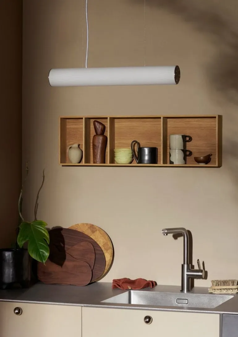 Ferm LIVING:s Bon hylla är en vacker och praktisk plats för dina mest älskade föremål. Bon hyllan, som är klädd med ekfaner, kan placeras på väggen både vertikalt och horisontellt. Den mångsidiga hyllan kommer att hitta sin plats i alla rum i huset – fyll den till exempel med dina favoriträtter eller vackra dekorativa föremål!