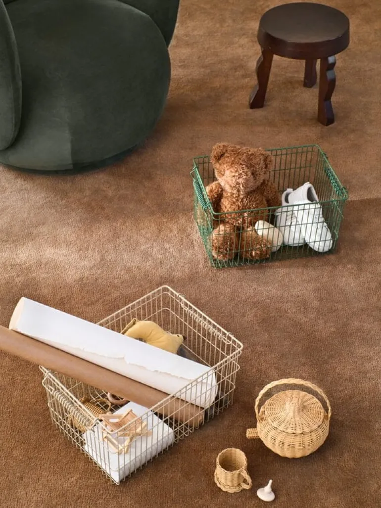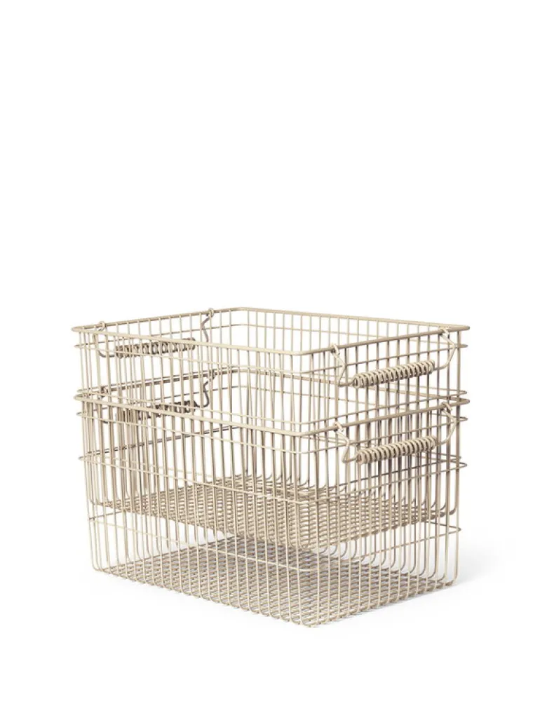 Ferm LIVINGs Cala-korg erbjuder en minimalistisk men ändå stilfull lösning för att hålla ordning på saker hemma eller på kontoret. Den stapelbara korgen är tillverkad av slitstark, pulverlackerad metall och är lika praktisk som den är iögonfallande. Den luftiga designen gör att den passar perfekt i köket för att förvara matvaror eller hygien- och skönhetsprodukter i badrummet, men den fungerar även som en vacker förvaringslösning för accessoarer i sovrummet eller garderoben, eller som ett mysigt hem för mjukdjur i barnrummet. Tack vare de praktiska vridhandtagen är Cala-korgen enkel att flytta från rum till rum och anpassa efter dina förvaringsbehov. Setet innehåller två Cala-korgar.
