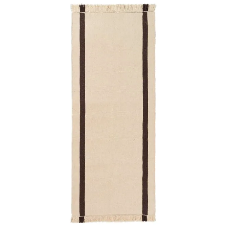 Mattan Calm Kelim från ferm LIVING är designad i fridfulla, jordnära toner med längsgående ränder. Den minimalistiska gångmattan passar perfekt i trånga utrymmen, som i hallen eller bredvid sängen.