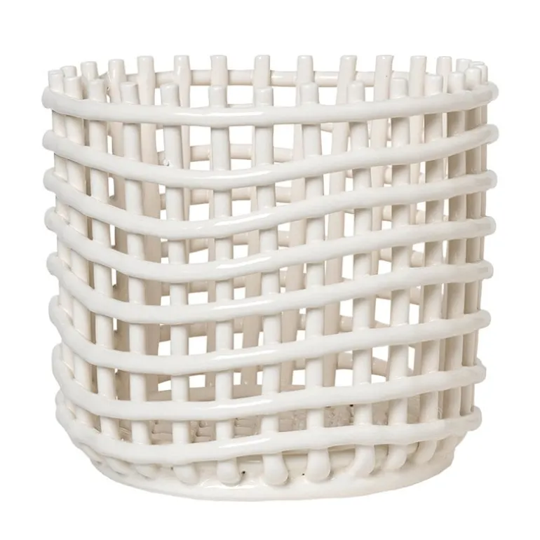 Korgen Ceramic från Ferm Living kombinerar krukmakeri och traditionell korgvävning i en rolig och överraskande modern korg. Den mångsidiga Ceramic-korgen kan användas som en kruka för blommor, till servering av frukt eller till förvaring. Den roliga designen fångar blickar och gör sig väl på egen hand.