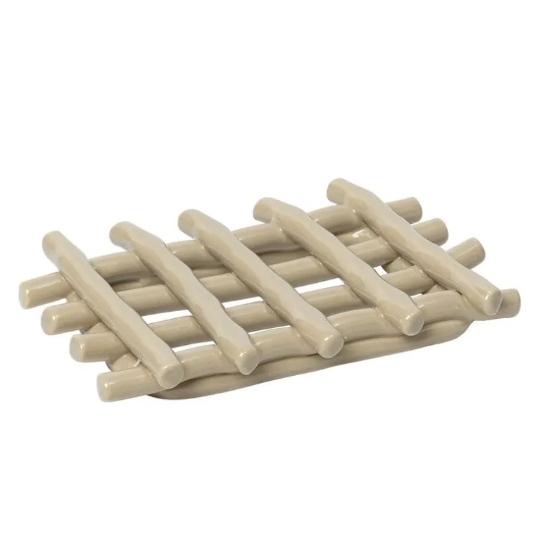 I tvålfatet Ceramic från ferm LIVING förenas krukmakerikonst med traditionell korgflätning, vilket har resulterat i en festlig och funktionellt modern tvålkopp. Lägg en tvål i det praktiska tvålfatet Ceramic och placera det i köket eller i badrummet, annars kan du till exempel låta diskborsten torka på den. Det överraskande utförandet drar blickarna till sig, men fatet gör sig också väl på egen hand som ett intressant, fristående designföremål.