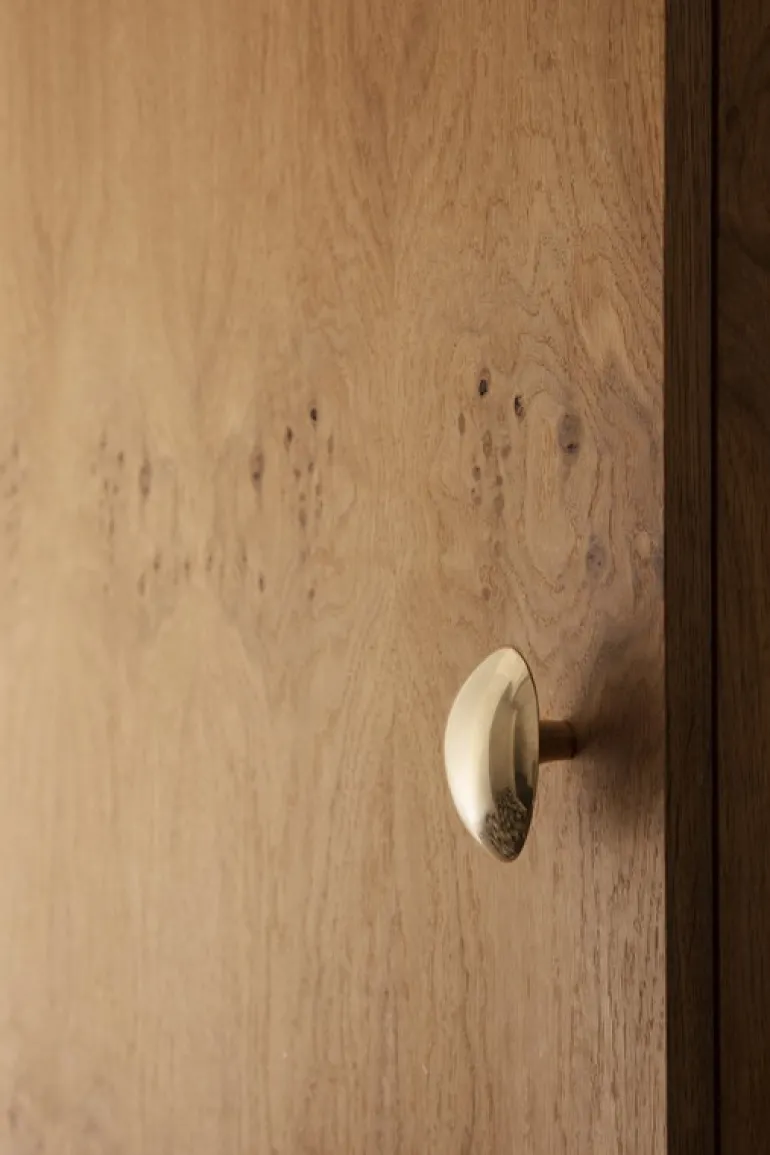 Ferm Livings Chanterelle-krokar designades av den erkända smyckesdesignern Helena Rohner. De vackra krokarna lånar sina organiska, konvexa former från kantarellsvampen. Tillverkningen baseras på en handritad skiss vilket ger krokarna en varm och naturlig känsla. Chanterelle-krokarna påminner om ett stort smycke och skulpteras från polerad massiv mässing vilket medför ett elegant sken i alla utrymmen från hallen till köket. Använd kroken för att hänga ditt favorithalsband, kläder eller handdukar. Den mångsidiga designen gör att den även kan användas som ett handtag.