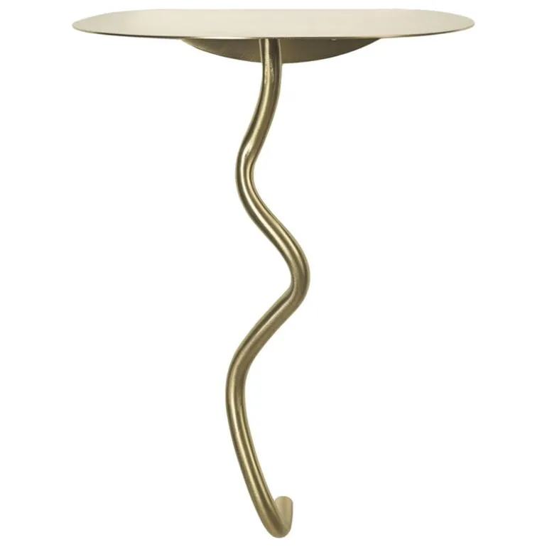 I väggbordet Curvature från ferm LIVING förenas både skönhet och funktion. Den väggmonterade hyllan kan användas som ett skulpterat sidobord i hallen eller vardagsrummet, eller som ett raffinerat nattygsbord i sovrummet. Produkterna i ferm LIVING:s Curvature-kollektion är tillverkade av mässing och har böjts på ett lekfullt sätt som bildar mjuka kontraster till det hårda materialet. Krokarna är handtillverkade med antingen en matt eller svart patina-finish och alla produkter är unika.