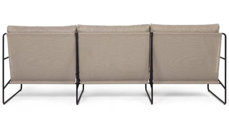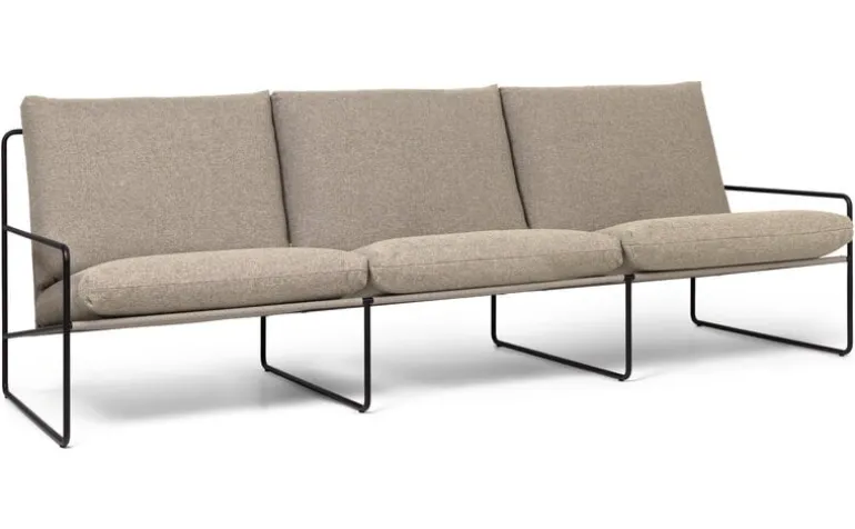 Desert 3-sits soffan är en del av ferm LIVING:s Desert kollektion som är inspirerad av en riktig trädgårdsklassiker, däckstolen. I ferm LIVING:s händer har stolen förvandlats till en soffa och fått en geometrisk form baserad på en smal metallram och en avslappnad, låg sits avslutad med plyschkuddar.