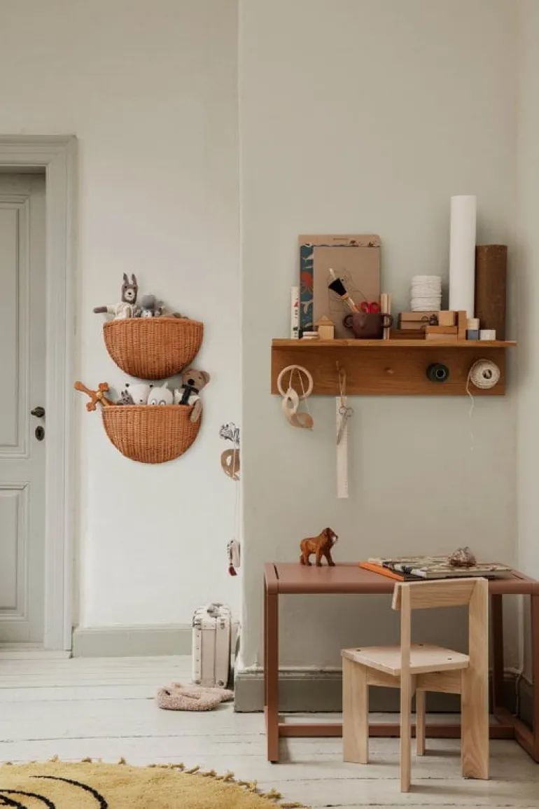 Ferm LIVING:s flätade väggficka ger en mjuk, rustik känsla till din inredning. Den vackra korgen i rotting är handgjord, vilket förklarar de små variationerna i korgens yta. De flätade väggfickorna är ett perfekt val för att ljusa upp ett barnrum, men kan också placeras på hallväggen för enkel förvaring av handskar, halsdukar och hattar. Paketet innehåller två korgar.