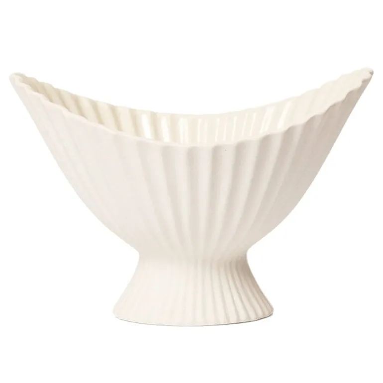 Skålen Fountain från ferm LIVING drar till sig uppmärksamheten med sina skulpturala men samtidigt mjuka linjer. Inspirationen till den upphöjda skålen är hämtad från formerna på klassiska fontäner och pryds av en vackert veckad ytstruktur. Den unika keramikskålen passar lika bra som ett dekorativt inslag i hemmet som en behållare till exempelvis blomsterarrangemang. Skålen fungerar även som ett vackert komplement till middagsbordet eller för förvaring av småsaker. Fountain är matt på utsidan och har en glaserad insida.