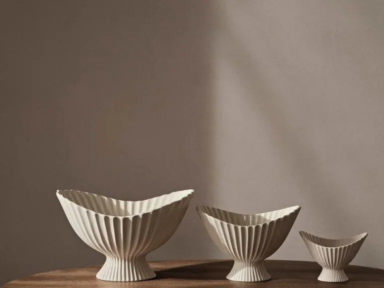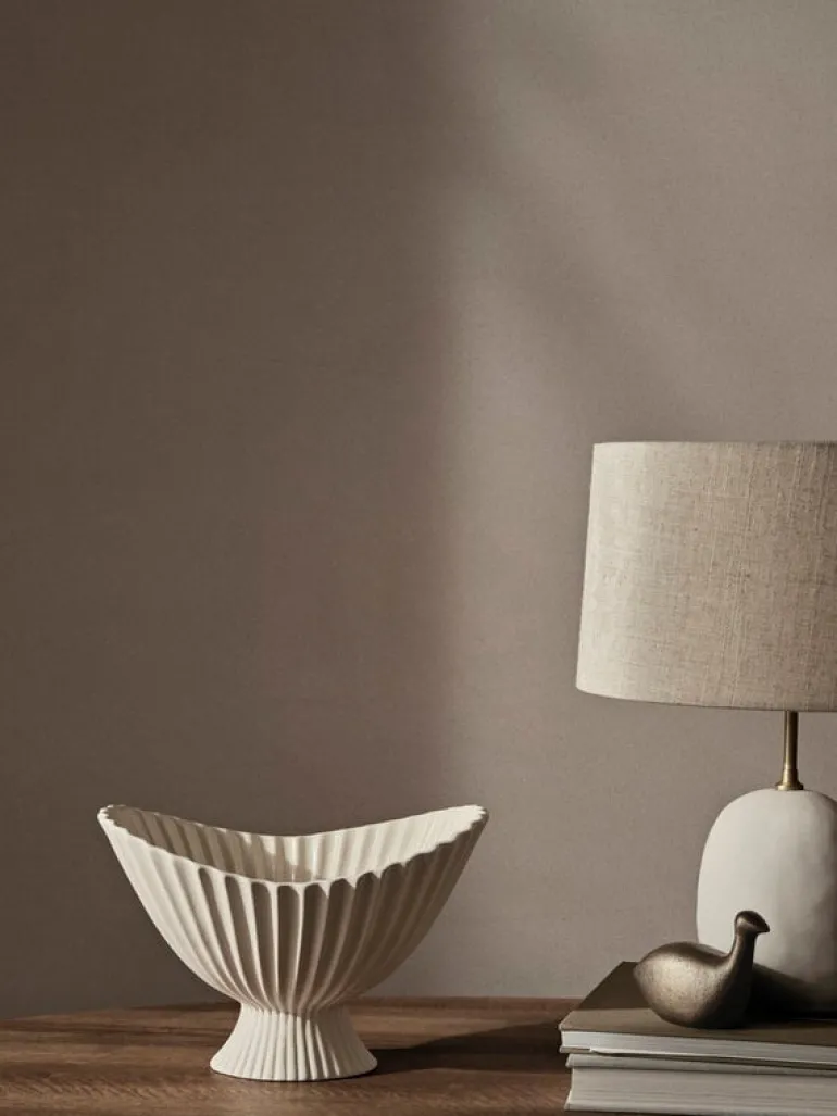 Skålen Fountain från ferm LIVING drar till sig uppmärksamheten med sina skulpturala men samtidigt mjuka linjer. Inspirationen till den upphöjda skålen är hämtad från formerna på klassiska fontäner och pryds av en vackert veckad ytstruktur. Den unika keramikskålen passar lika bra som ett dekorativt inslag i hemmet som en behållare till exempelvis blomsterarrangemang. Skålen fungerar även som ett vackert komplement till middagsbordet eller för förvaring av småsaker. Fountain är matt på utsidan och har en glaserad insida.