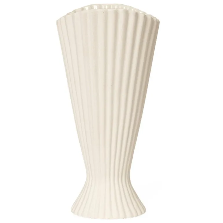 Ferm LIVING:s Fountain är en vas som fångar uppmärksamheten med sitt skulpturala men mjukt linjerade utseende. Den upphöjda behållaren är inspirerad av formen på klassiska fontäner och har en vacker, veckad textur på sin yta.