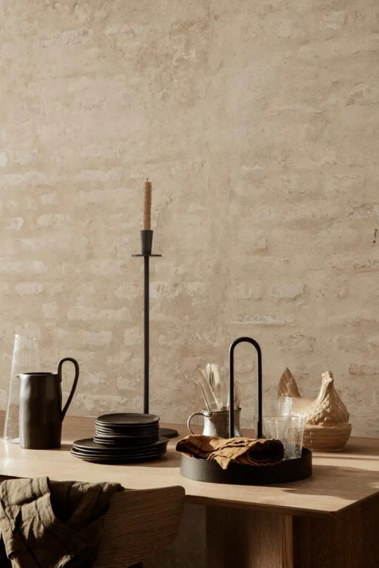 Ferm Livings Grib är en elegant bricka med många användningsområden som charmar med sin varliga och mjuka design. Brickan är tillverkad av pulverlackerad metall och erbjuder oändliga möjligheter, inte bara för servering, utan också för olika förvarings- och visningsbehov som finns i hemmet. Med Grib kan du organisera allt från kryddor till kontorsmaterial och badprodukter. Brickan kan också användas utomhus, och den passar perfekt att servera drycker och snacks i trädgården med. Tack vare det praktiska handtaget är brickan lätt att flytta runt.