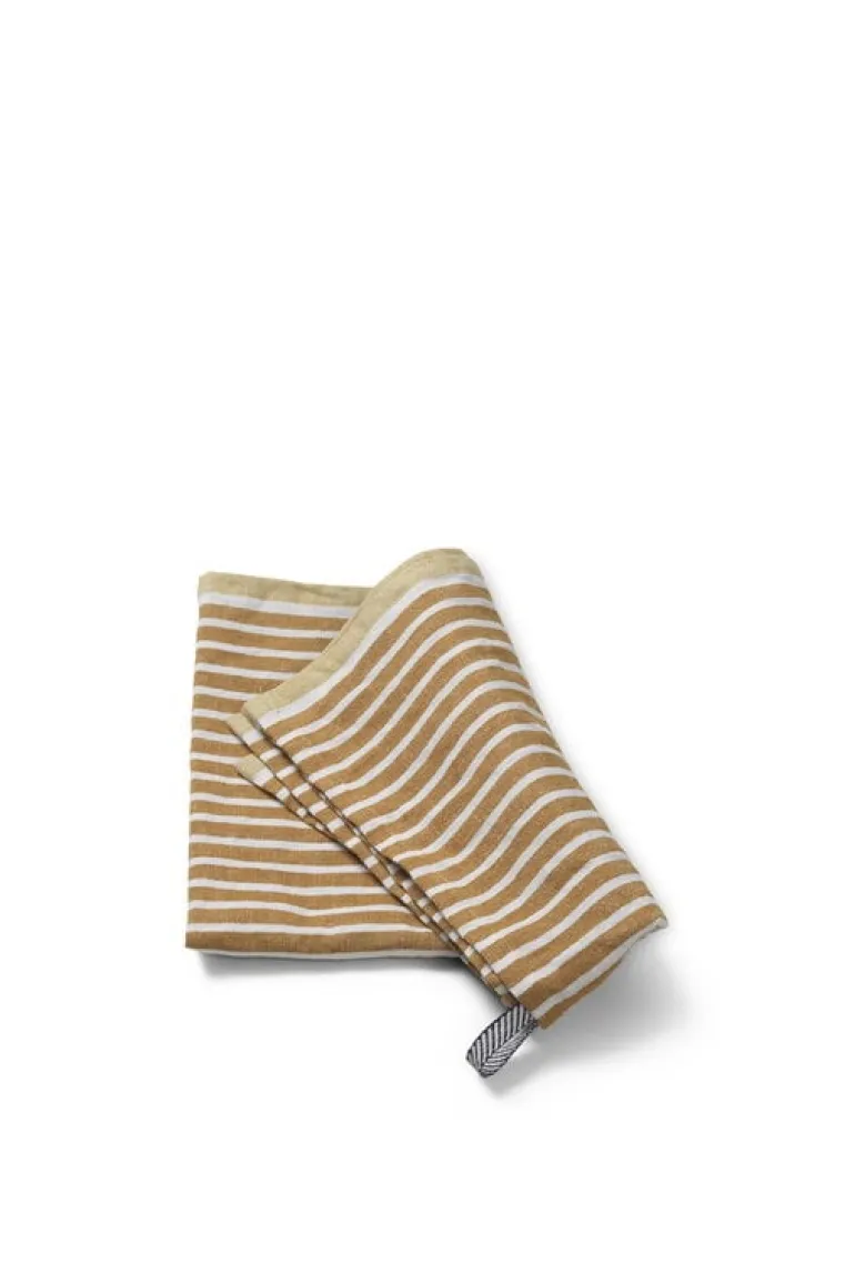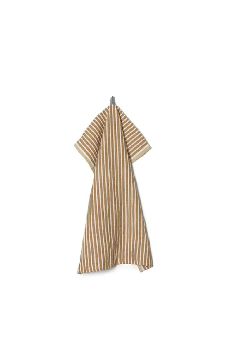 Kökshandduken Hale från ferm LIVING visar traditionella mönster kombinerat med samtida färger – välj din favorit bland de många intressanta varianterna! Handduken pryds av vackra gyllenbruna och ljusgråa nyanser som fyller ditt kök med en trivsamt naturlig känsla. Kökshandduken är tillverkad i 50 % linne och 50 % bomull för att ha en så god uppsugningsförmåga som möjligt.