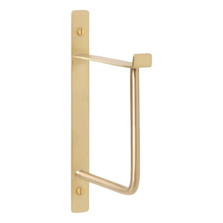 Ferm Livings Hang Rack har en enkel design som överraskar med sin mångsidighet. Den platsbesparande hyllan i mässing har en krok och plats för upp till fyra klädhängare. Hang Rack bidrar med industriell stil och extra förvaringsutrymme i badrummet, hallen eller omklädningsrummet.
