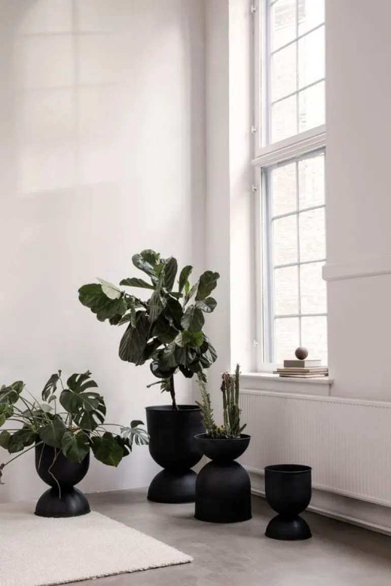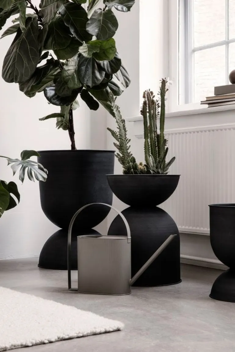Ferm Livings kruka Hourglass tar dina växter till nya höjder. Krukan har, som namnet antyder, formen av ett timglas. Formen är inte bara vacker, den har även en funktion: krukan kan användas upp och ned. Välj sida efter hur mycket plats dina växter behöver, eller helt enkelt det du tycker är snyggast. Hourglass kruka är tillverkad i matt metall och kan användas både inomhus och utomhus.
