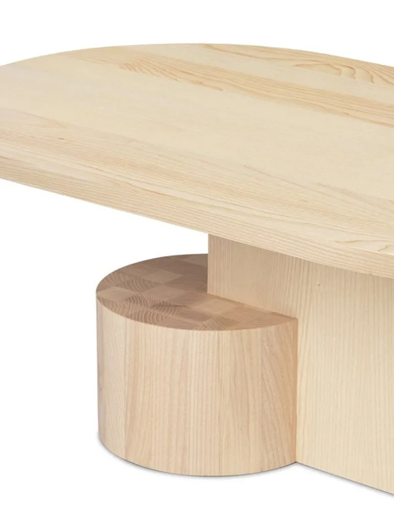 Soffbordet Insert, från Ferm Living, har ett starkt skulpturalt utseende med fascinerande, asymmetriska former som bygger upp strukturen – och håller upp en elegant, oval bordsskiva. Bordets T-formade bas balanseras med ett cylinderformat stöd som även ger en praktisk yta att förvara fjärrkontroller på. Soffbordet Insert är skickligt tillverkat av askträ och dekorerat med träets naturliga ådringsmönster, vilket ger bordets geometriska utseende en mjuk touch. Insert är som ett funktionellt stycke konst, som både ger ditt vardagsrum ett skulpturalt inslag samt den naturliga skönheten av trämaterialet.