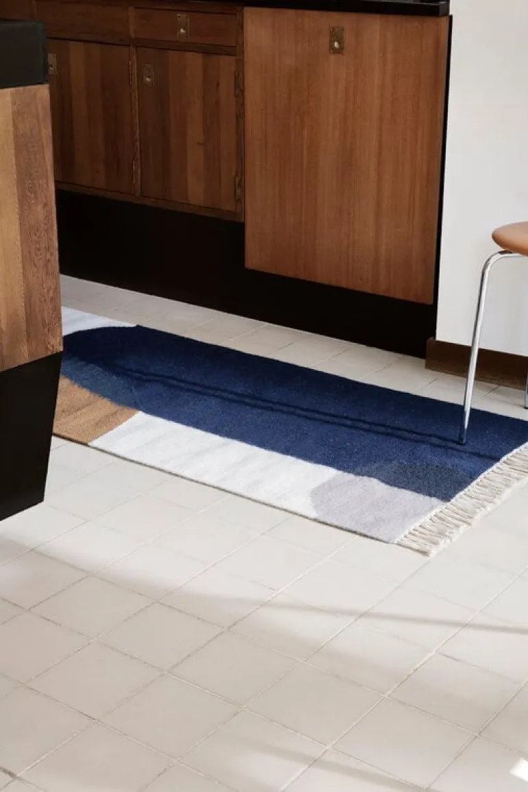 Ferm Livings kelimgångmatta Merge för samman starka och runda geometriska former med varma dämpade toner. Ferm Livings kelimmattor och gångmattor är vävda med en blandning av ull och bomull, de kombinerar matt-traditioner från öst med skandinavisk design. Mattorna är unika eftersom de tillverkas för hand med traditionell vävteknik. Dessutom skapar det handfärgade yllet en subtil variation i nyansen och ytstrukturen på varje matta. Ferm Livings leverantör är Woolmark-licenserade, vilket är en garanti på att ullen är av hög kvalitet.