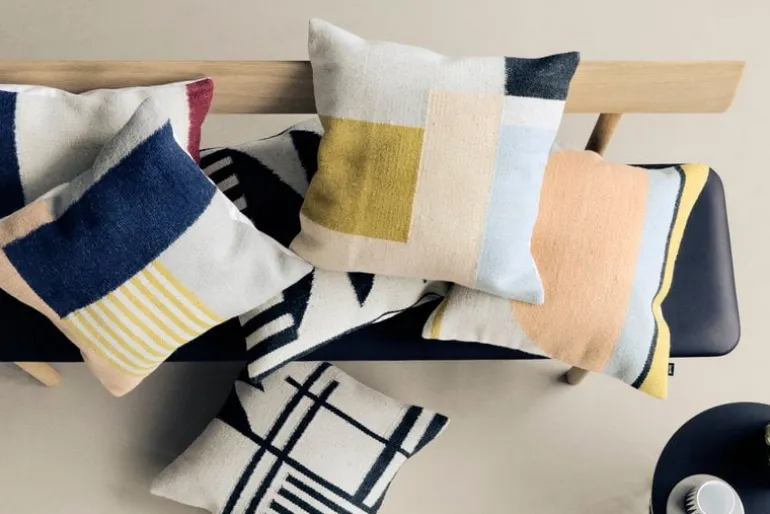 Kelim-kuddar av Ferm Living kännetecknas av en rå, organisk touch och grafiska mönster som passar utmärkt tillsammans. Kelim-kuddarna är unika eftersom de tillverkas för hand med traditionell vävteknik. Dessutom skapar det handfärgade yllet en viss variation i nyansen och texturen på varje kudde. Ferm Livings leverantör är Woolmark-licenserad, vilket är en garanti på att ullen är av hög kvalitet.