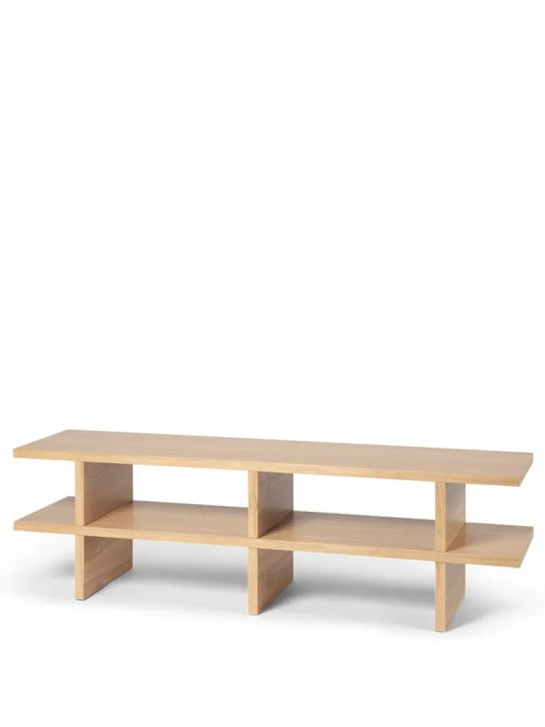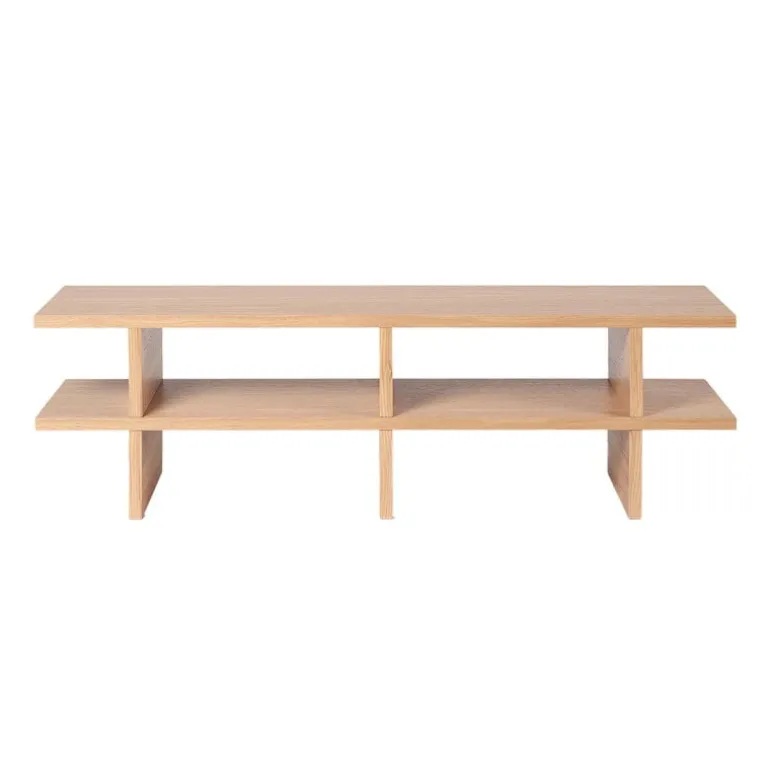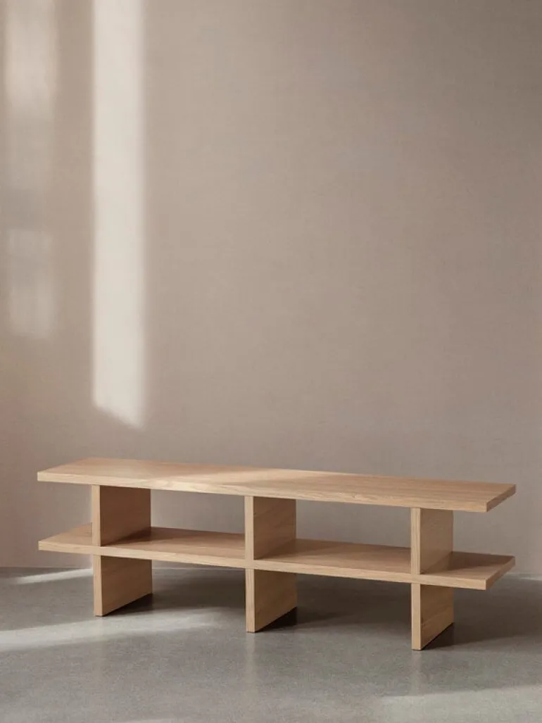 Bänken Kona från ferm LIVING är en snygg, låg bänk i japansk stil som har en elegant, minimalistisk design. Den är tillverkad av lackerat ekfaner med en MDP-kärna och kan användas som både sittplats och som förvaringsmöbel. Placera bänken Kona i fotändan av sängen, i hallen som hjälpmedel vid på- och avklädning eller använd den som en tv-bänk eller låg bokhylla i vardagsrummet.