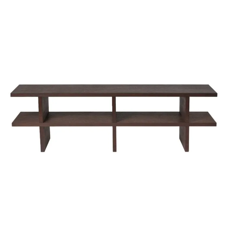 Bänken Kona från ferm LIVING är en snygg, låg bänk i japansk stil som har en elegant, minimalistisk design. Den är tillverkad av lackerat ekfaner med en MDP-kärna och kan användas som både sittplats och som förvaringsmöbel. Placera bänken Kona i fotändan av sängen, i hallen som hjälpmedel vid på- och avklädning eller använd den som en tv-bänk eller låg bokhylla i vardagsrummet.