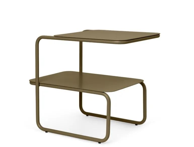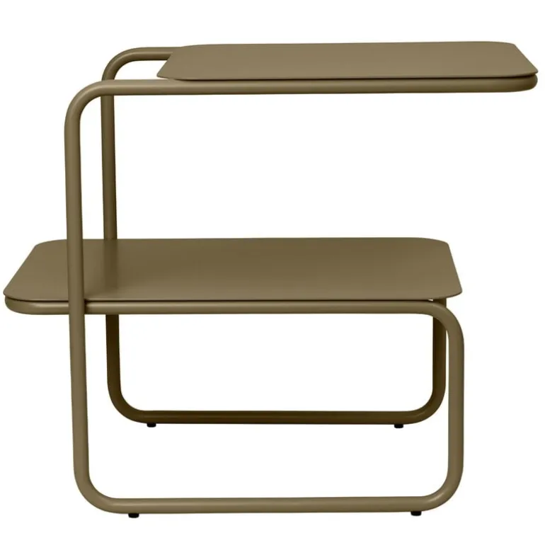 Ferm Livings bord Level charmar med den asymmetriska, moderna designen. Bordet är tillverkat av pulverlackerat stål och passar både inomhus och utomhus. Den minimalistiska ramen bildas av en geometrisk, kontinuerlig linje. Tack vare de två skivorna är bordet perfekt för förvaring, men också bredvid soffan eller balkongstolarna.