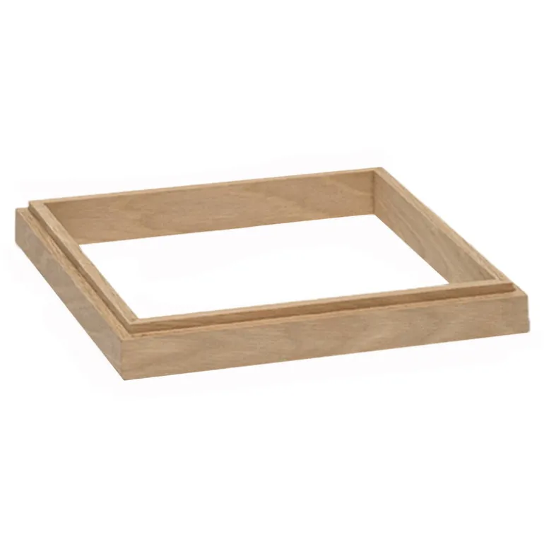 Den här träbasen är designad som ett tillägg till ferm LIVING:s Miru glasmonter. Basen är nödvändig när glaslådorna staplas på varandra, men den kan också användas som bas för en enskild glaslåda.