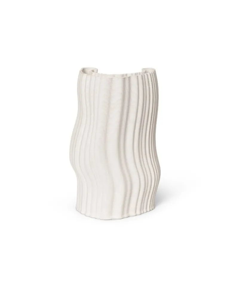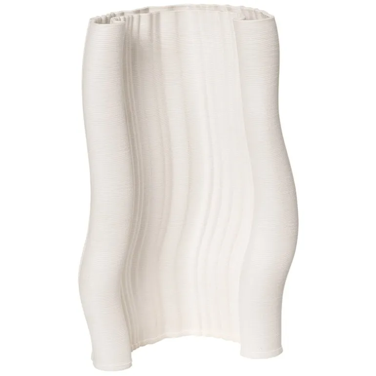 Ferm LIVING:s Moiré vas är en slående kombination av naturligt och digitalt: vasens mjuka, organiska veck och dess taktila yta har skapats genom 3D-utskrift av lera. Materialet och metoden gör varje Moiré vas till en unik individ vars enastående textur kan utforskas i timmar.