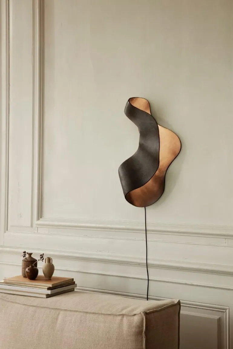 ferm LIVING:s vägglampa Oyster är som ett konstverk som påminner om en ostronskal som samlats på en strand. Lampan är tillverkad av återvunnen aluminium och har en industriell men ändå mjuk design som ger en naturlig kontrast till väggen, även utan ljuset. Med en LED-ljuskälla skapar den distinkta vägglampan Oyster lekfulla ljus och skuggor, och sprider unika reflektioner runt omkring sig.