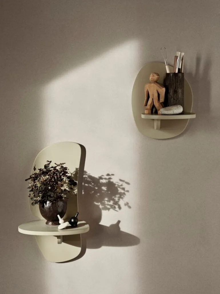 Hyllan Pilu från ferm LIVING erbjuder en charmerande asymmetrisk inramning inom vilken du kan visa upp dina favoritföremål. Den här lekfullt utformade lilla vägghyllan passar perfekt till en krukväxt, ett prydnadsföremål eller en bordslampa, och kan även användas som ett praktiskt nattduksbord, exempelvis i barnens rum. Hyllan Pilu är tillverkad av målad, certifierad MDF från hållbart skogsbruk och förenar användbarhet med nyckfullhet.