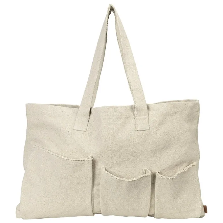 Weekendväskan Pocket från ferm LIVING är en lättsam följeslagare att ha med på både kortare och längre resor. Den stora weekendväskan i kanvas är tillverkad av GOTS-certifierad, ekologisk bomull och har utrustats med smarta fickor så att du enkelt kan få tag på dina mindre prylar. Den lätta och lediga looken fulländas med blekta kanter på fickorna. Den stilrena weekendväskan Pocket är dessutom perfekt till att hålla ordning på saker – du kan exempelvis använda den som tvättpåse eller förvara barnens leksaker i den.