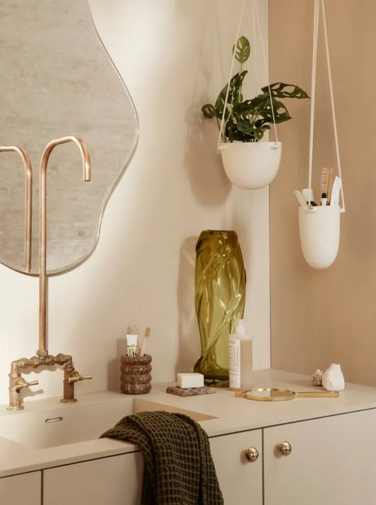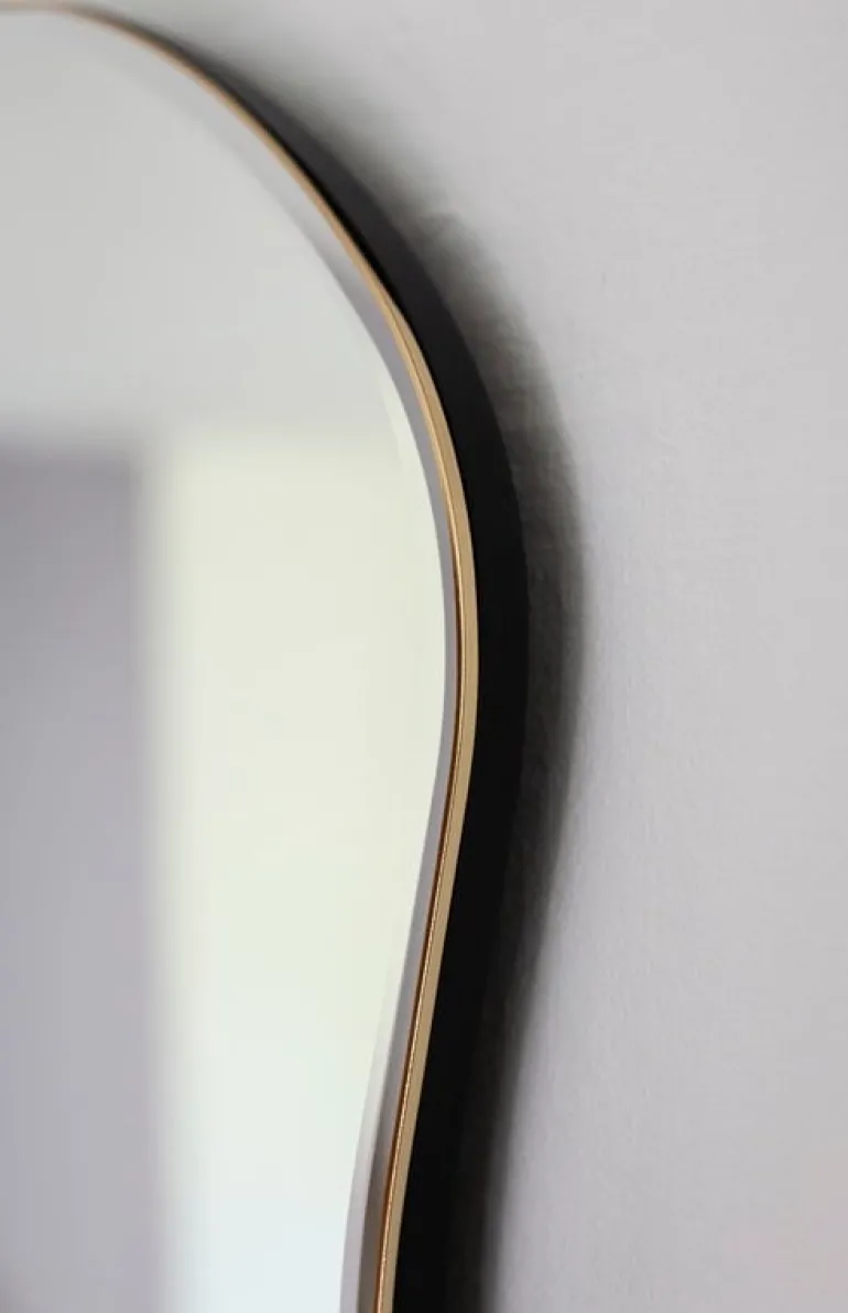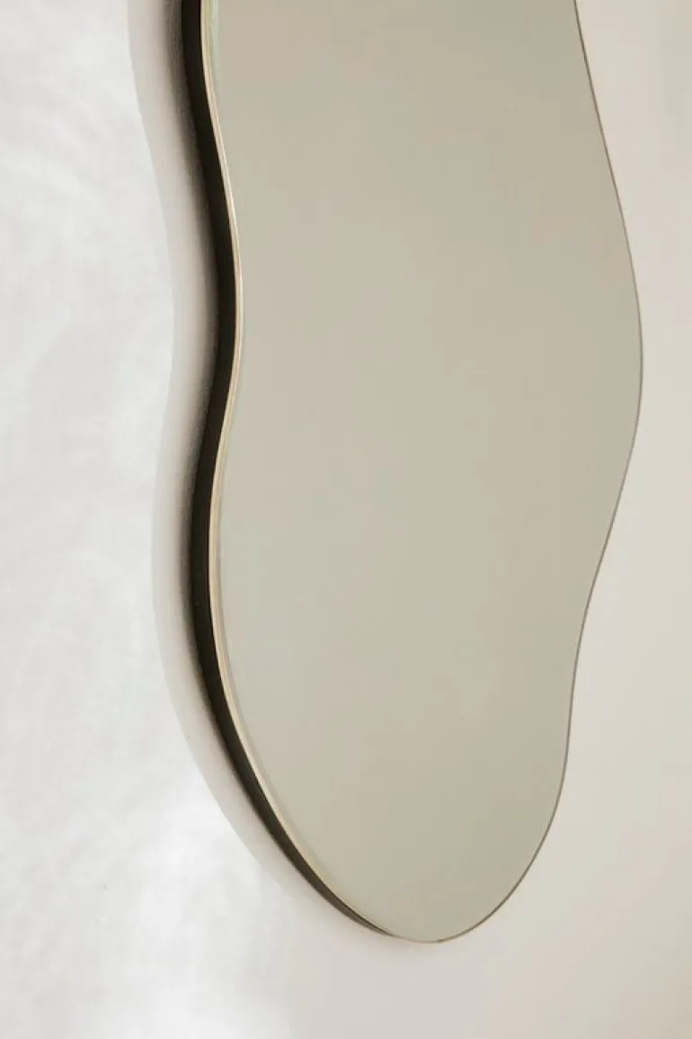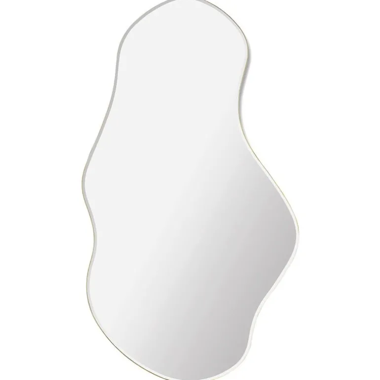 Pond-spegeln från Ferm Living har fått inspiration ifrån de oförutsägbara rörelserna av porlande vatten. Tack vare sin unika form är Pond inte bara en spegel men även ett dekorativt objekt som kan hängas på flera olika sätt. Med en tunn ram av mässing som omger den organiska formen lyckas Pond sticka ut ur mängden samtidigt som den behåller ödmjukheten.
