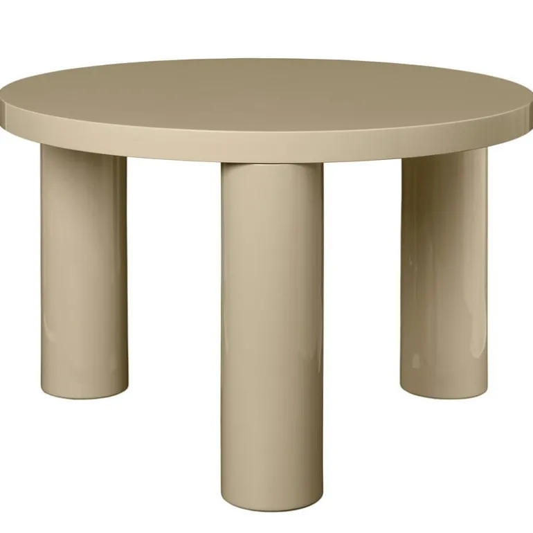 Ferm LIVING:s eleganta soffbord Post hämtar inspiration från brutalismen och dess nakna formspråk. Med ett spel av geometriska former uppvisar Post-bordet en balanserad kombination av kolumnliknande ben och en rund bordsskiva, vilket ger det unika stycket dess enkla men ändå imponerande utseende. Färdigställt med högglanslack, utstrålar det karaktärsfulla bordet karisma, och det är perfekt för att lägga till en rejäl dos stämningshöjande, oblyg attityd till vardagsrumsinredningen.
