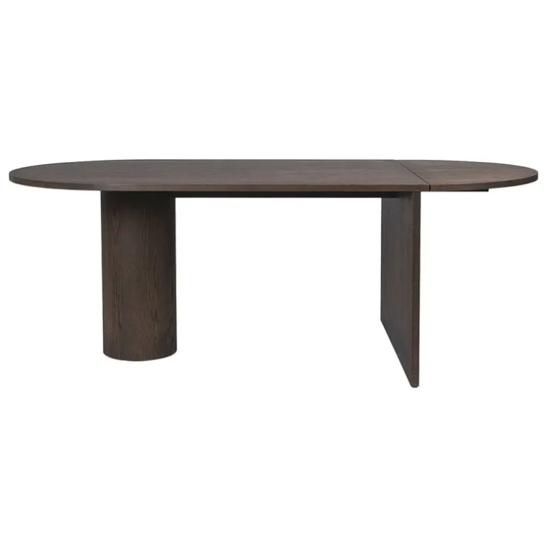 Ferm LIVINGs matbord Pylo har en distinkt siluett som bjuder in gästerna att samlas runt det. Bordet är tillverkat av ansvarsfullt utvald, certifierad massiv ek och den förlängningsbara bordsskivan framhäver träets organiska skönhet, vilket gör bordet till en vacker mittpunkt både till vardags och vid speciella tillfällen – inget behov av bordsduk! För de tillfällen då extra gäster dyker upp finns det en smart förlängning i ena änden av bordet, som ger plats för minst två personer till.