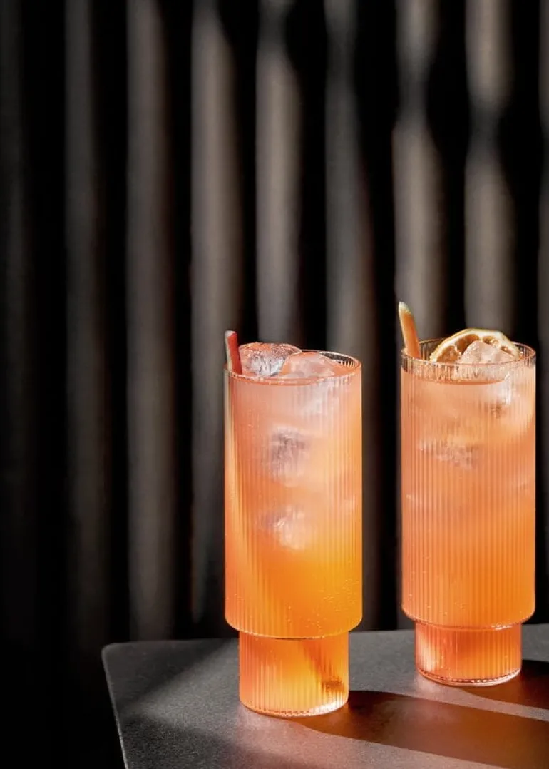 Ferm Livings longdrinkglas Ripple är ett utmärkt exempel på ny dansk glasdesign. De höga 3 dl-glasen är dekorerade med tunna, vertikala krusningar och ger ett både estetiskt och funktionellt inslag vid servering av drinkar och cocktails. Ripple longdrinkglas säljs i fyrpack.