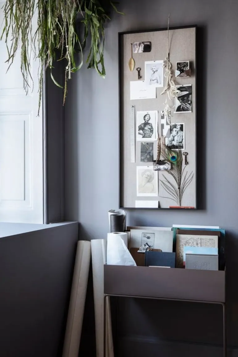 Anslagstavlan Scenery från danska Ferm Living kännetecknas av sin svartbetsade ram och korkbas som klätts i ett tyg i bomullslinne. Tavlans organiska elegans passar både hemma och på kontoret. Tack vare sin stora storlek har Scenery gott om plats för post-it-lappar, vykort, bilder och andra viktiga papper.