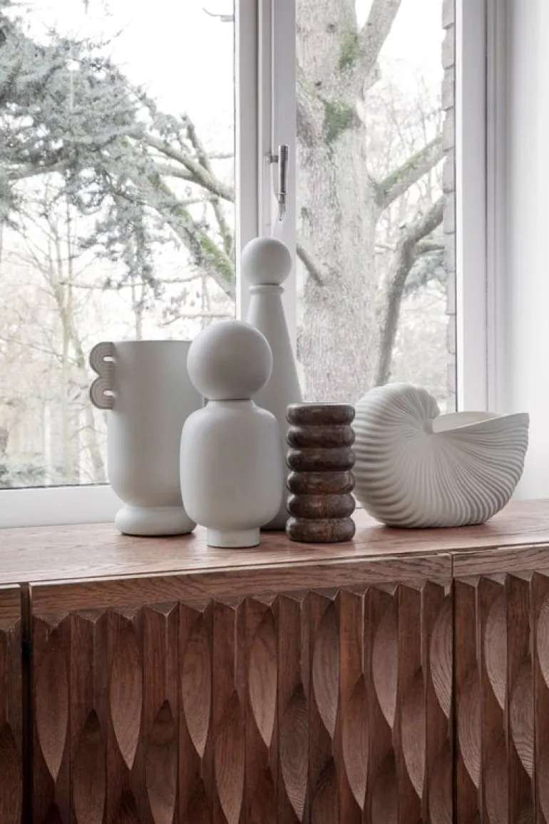 Shell från Ferm Living har en organisk form och liknar en snäcka, en kruka som påminner dig om havet. Keramikkrukan har en matt yta på utsidan och är ett iögonfallande designföremål i sig själv. Den är också vacker tillsammans med en krukväxt eller dina favoritblommor. Placera Shell på fönsterbrädan eller i bokhyllan.Du kan också ge bort krukan till någon som är fascinerad av livet under ytan.