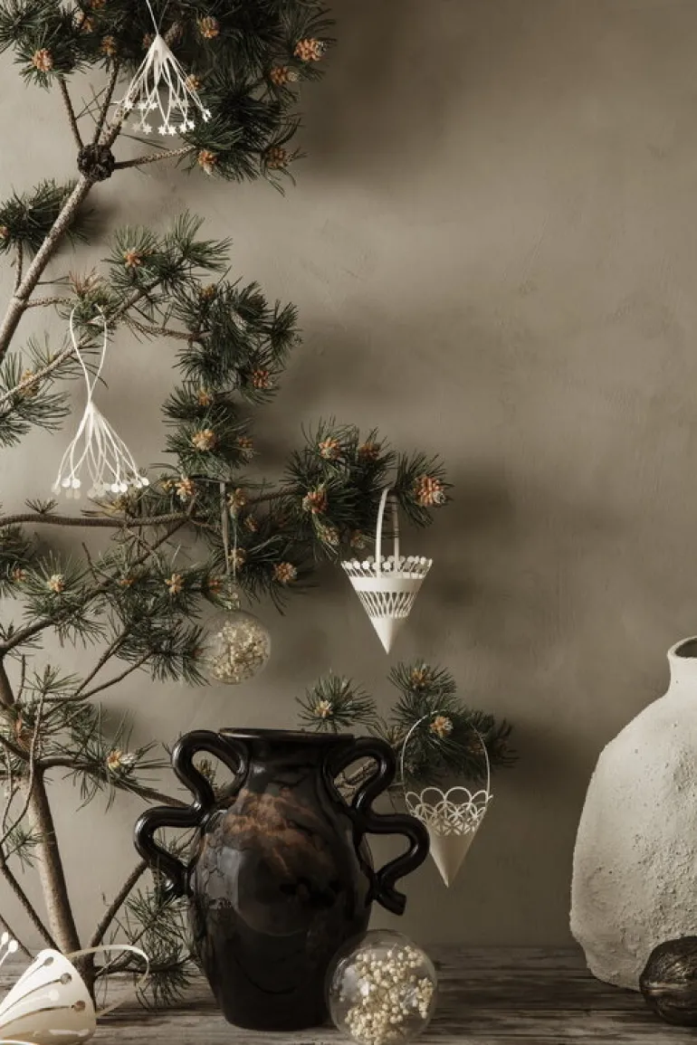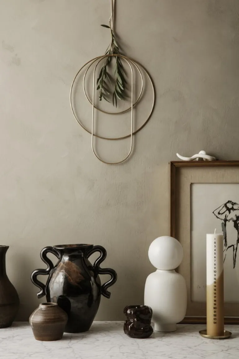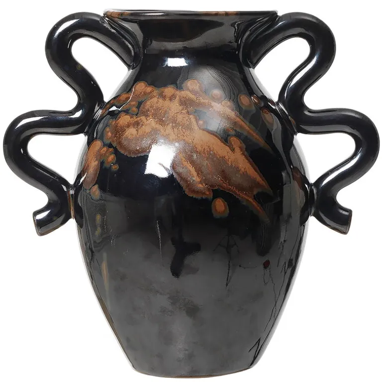 Ferm Livings Verso bordsvas påminner med sina böjda former och lekfulla dubbla handtag om gammal keramik. Vasen i stengods fulländas av en speciell reaktiv glasyr som gör ytan och nyansen hos varje vas unik.
