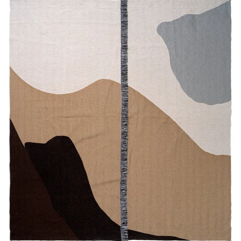 Ferm Livings Vista-överkast har klätts med ett abstrakt mönster som visar jorden ovanifrån. Överkastet Vista har vävts med en traditionell teknik och dekorerats med fransar som delar mönstret på ett fascinerande sätt.