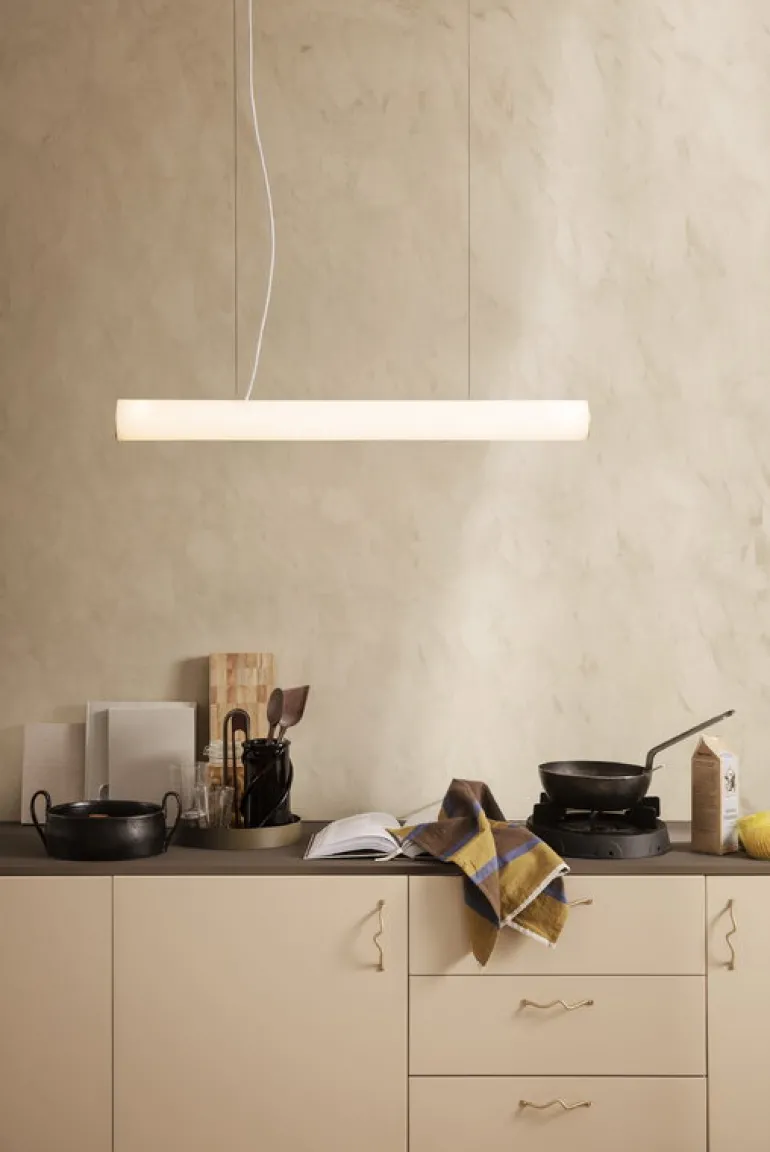 Ferm LIVING:s hänglampa Vuelta har hämtat sin form från de stela travertinkolonnerna i det antika Grekland, och återuppfunnit det klassiska motivet med överraskande lätthet och mjukhet – och förfinade detaljer i mässing. Denna charmiga stämningshöjare passar perfekt i alla utrymmen, från matplatsen till vardagsrummet, där en varm och lugnande ljuskrets behövs. Den mångsidiga hänglampan Vuelta är också dimbar: du kan kontrollera ljusintensiteten med en fjärrkontroll, som ingår i leveransen.