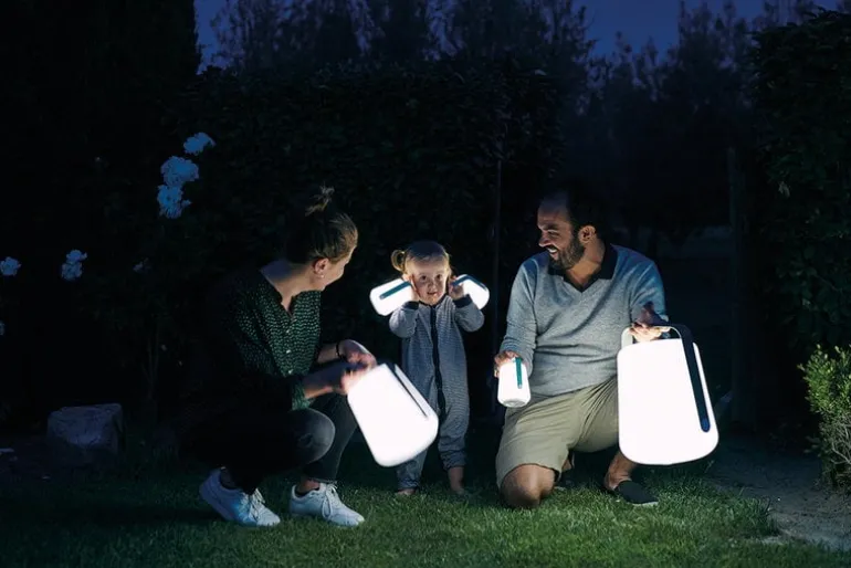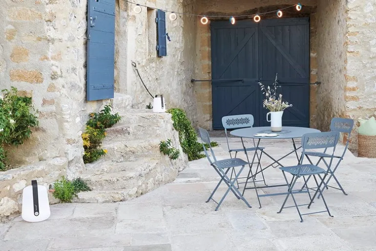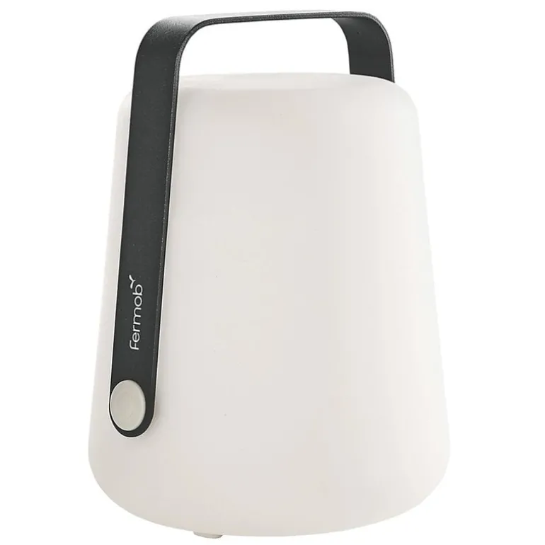 Balad H38-lampan från Fermob kan placeras på trädgårdsbordet, på en trädgren eller inne i hemmet. Den sladdlösa bordslampan har två olika ljuslägen och färgtemperaturer. Med det vertikala stället som säljs separat kan Balad förvandlas till en stilfull golvlampa.