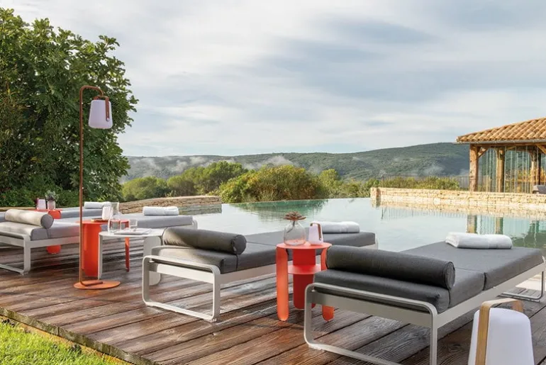 Solsängen Bellevie Premium från Fermob är så bekväm att du inte har någon lust att lämna den alls. Den lätt välvda stolen har tre olika lägen, så att du kan ställa in den för att passa det du håller på med för stunden: sänk ner ryggstödet om du vill ta dig en liten siesta i solen, eller höj det ett snäpp om du vill smutta på en alkoholfri drink eller en cocktail eller läsa en bok. Vilstolen Bellevie är väldigt motståndskraftig och klarar till och med ostadigt väder: ramen är gjord av lätt men tåligt aluminium, och madrassen är tillverkad i väldigt bekvämt och följsamt polyuretanskum som klätts med smutsavvisande, UV-beständigt Sunbrella-tyg. Även om tyget i viss mån står emot vatten och fukt ska madrassen förvaras inomhus om det regnar mycket eller vid andra liknande väderförhållanden.