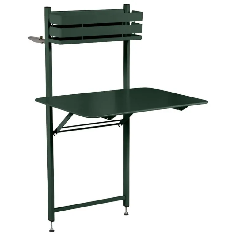 Fermobs bord Bistro Balcony är speciellt utformat för små utomhusutrymmen. Detta fällbara utomhusbord har en praktiskt hopfällbar bordsskiva som rymmer mat eller kaffe för två personer. Balkongbordet i metall har en rejäl blomlåda på övre kanten, perfekt för sommarblommor eller dina favoritörter. Bordet Bistro Balcony har höj- och sänkbara ben och monteringsbeslag, så att du kan montera bordet antingen mot en vägg eller en balkongräcke, beroende på vad du föredrar.