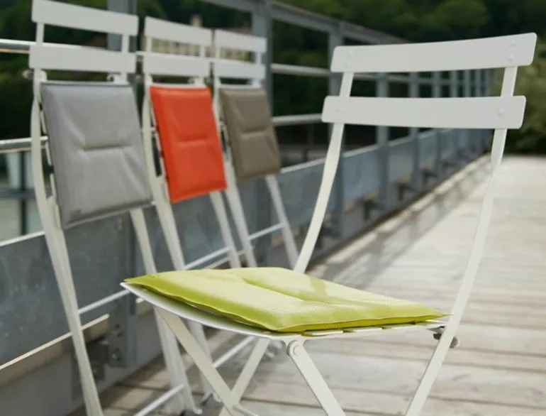 Fermobs utfällbara möbel Bistro är inte bara charmig och bekväm, den är också säker i alla väder. Den UV-skyddande pulverlacken garanterar klara färger i många år framåt. Bistro-kollektionen är tillverkad i Fermobs fabrik i Frankrike, av material i högsta kvalitet.