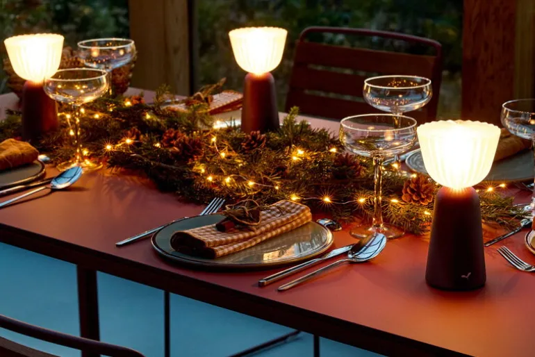 Fermobs bordslampa Swiing är en elegant och mångsidig ljuskälla som ger både ljus och stämning till alla utrymmen. Tack vare sin IP54-klassning är den portabla Swiing perfekt för utomhusbruk på uteplatser, balkonger eller i trädgården! Det uppladdningsbara batteriet ger upp till 10 timmars belysning, och när ljuset äntligen slocknar är det enkelt att ladda lampan med den medföljande USB-C-kabeln, till exempel via din dator.