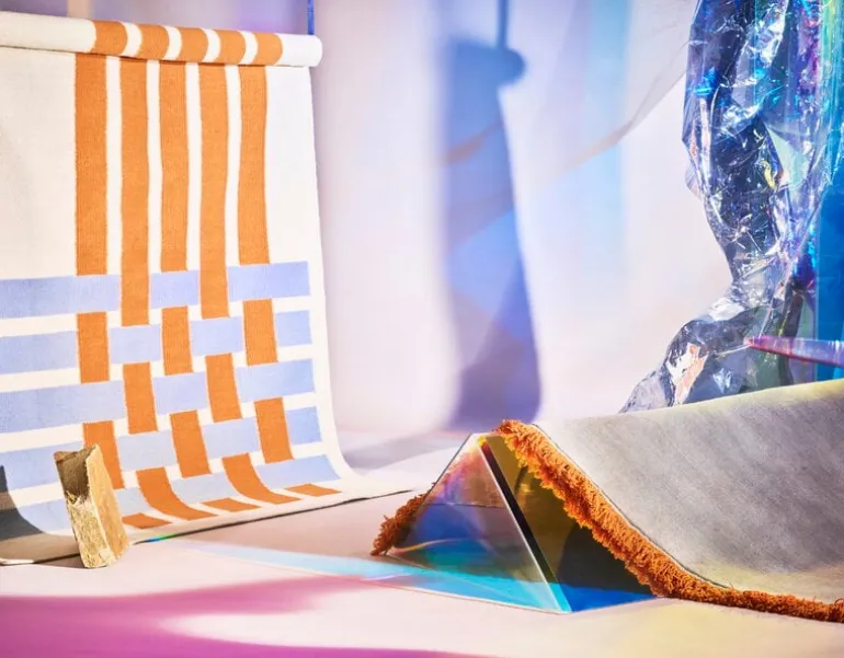Finartes Harmony-matta är en iögonfallande ullmatta med en yta som känns underbart bekväm och mjuk under fötterna. Mattans djärva utseende är en kombination av ljusa färger: de orangea fransarna skapar en explosiv kontrast till den ljusblåa mattan. Det övergripande utseendet är vågat men förblir samtidigt harmoniskt och mysigt. Mattan finns tillgänglig i flera storlekar för att passa olika utrymmen i hemmet, från hallen och matplatsen till sovrummet och vardagsrummet. Harmony-mattan är handgjord i Indien och kommer med en QR-kod som du kan skanna för att spåra mattans resa från material till slutprodukt.