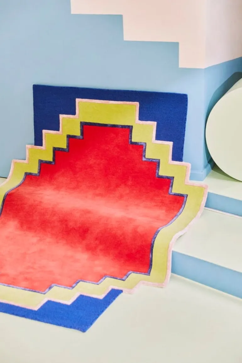 Finartes matta Kertomus tar dig med till sagornas värld – ”kertomus” är det finska ordet för ”saga”. Med sina klara färger och unika geometriska former är den charmiga mattan handtuftad i ull och avslutad med glänsande detaljer i tencel. Den visuellt slående mattan passar perfekt i ett hem med maximalistisk inredningsstil, men tilltalar även de med en mer minimalistisk smak.