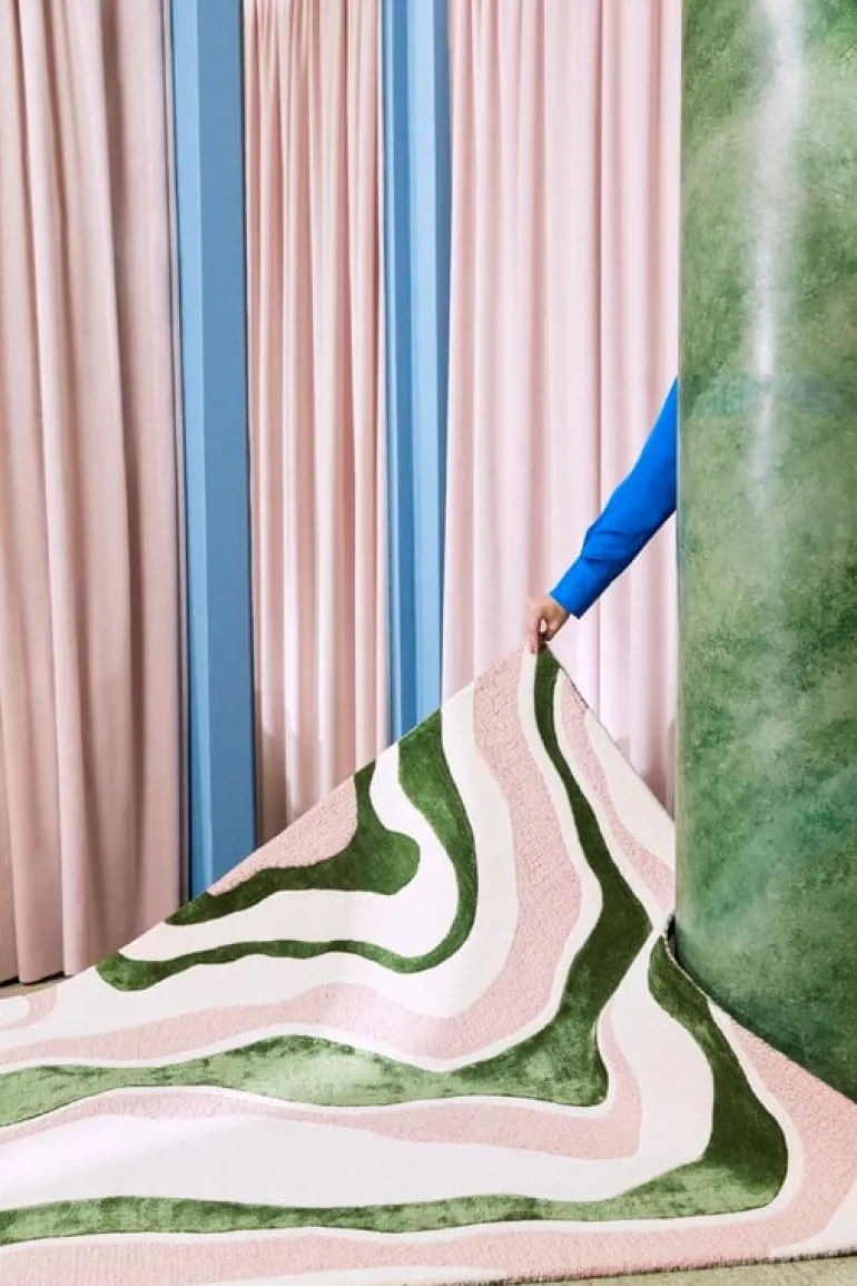 Finartes matta Virta har ett fängslande, vågliknande mönster – därav namnet ”Virta”, som betyder ”flöde” på finska. Mattan är handtuftad av mjuk ull och lyxigt skimrande tencel och blandar mästerligt olika material och texturer till en livfull, dynamisk design som garanterat kommer att göra sig märkbar i alla utrymmen.