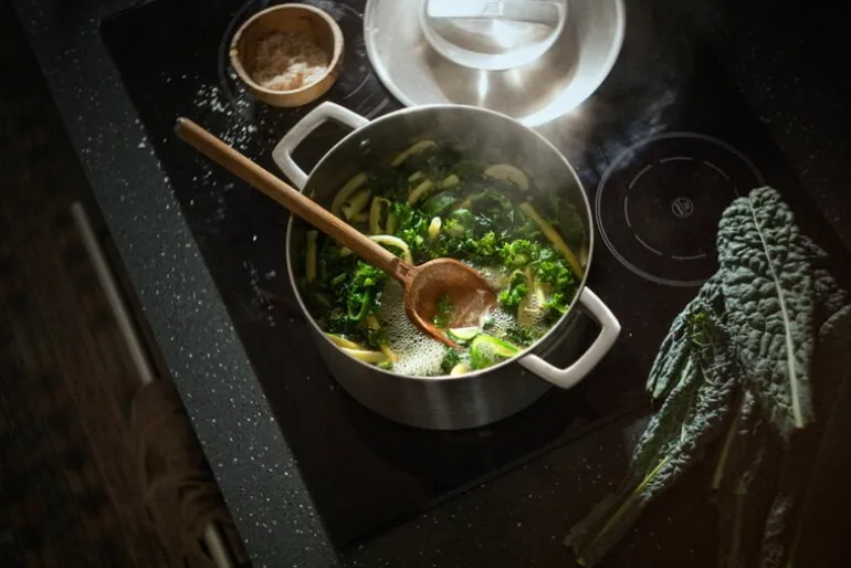 Grytan Norden från Fiskars är idealisk för tillagning av soppor, såser och grytor. Multi-Ply-konstruktionen och de tjocka bottnarna i Nordens kastruller, grytor och pannor gör att värmefördelningen blir jämn, och de ergonomiska handtagen är utformade för att minimera värmeöverföringen. Stålgrytan har inte någon beläggning och insidan är måttgraderad. Grytan kan även användas vid tillredning i ugn i upp till 270 °C.