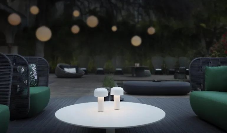 Bordslampan Bellhop, i design av Edward Barber and Jay Osgerby, är ett ”modernt stearinljus” format som en svamp. Bellhop skapar en stämningsfull cirkel av ljus kring sig och lampan har dimmerfunktion. Den lätta portabla lampan är sladdlös och kan därför användas i utrymmen som saknar elektricitet. Bellhops laddningsbara batteri räcker i 6 timmar på den högsta ljusstyrkan. Justerar du ljusstyrkan till en lägre nivå kan batteriet räcka i upp till 24 timmar.