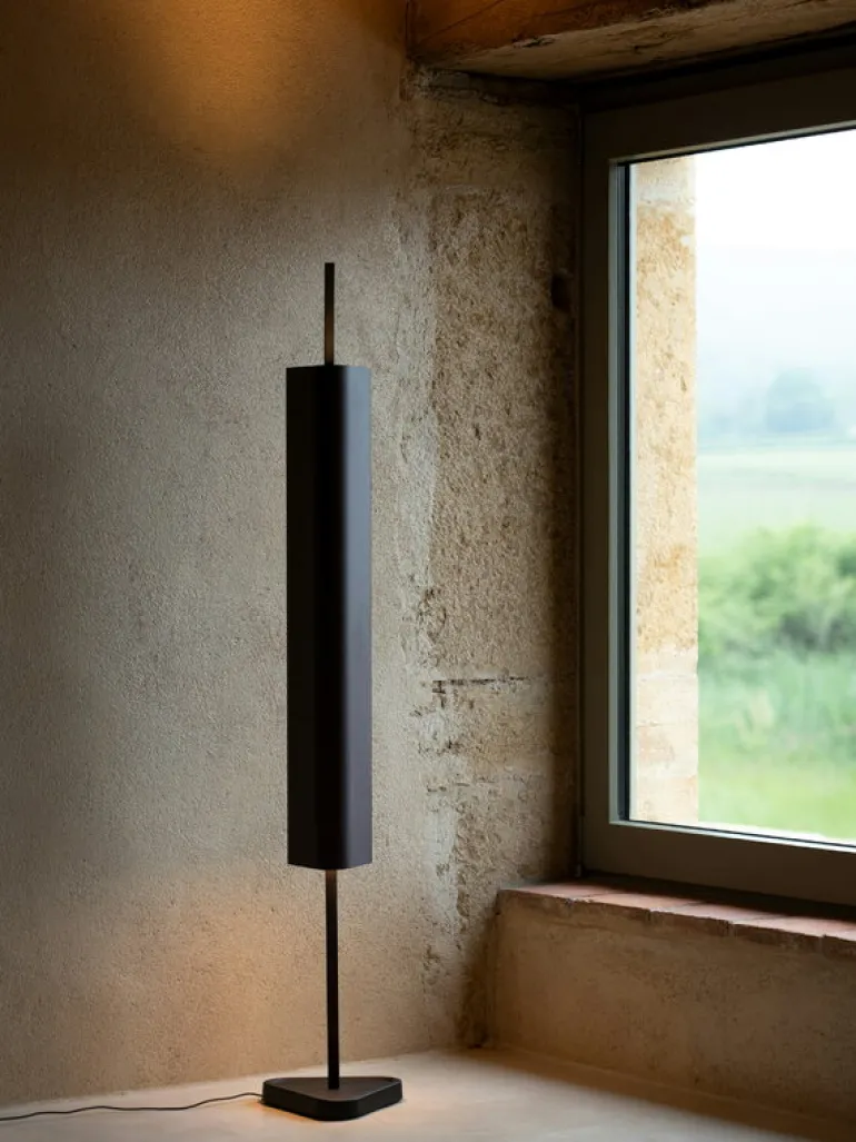 Flos golvlampa Emi fångar blicken med sin enkla, men samtidigt minimalistiska och fascinerande design, som är så typisk för formgivaren Erwan Bouroullec. Den skulpterade ljuskällan består av en triangulär, tubformad skärm som nästan ser ut att sväva i luften. Golvlampan sprider ljus i två riktningar: den övre delen är stark nog att lysa upp hela rummet, medan den nedre delen ger ett mjukare, diffust sken som lyser upp utrymmet.